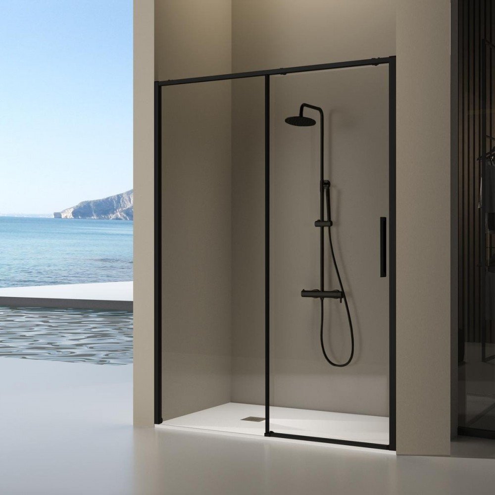 Mampara frontal fijo y corredera en negro mate Delta