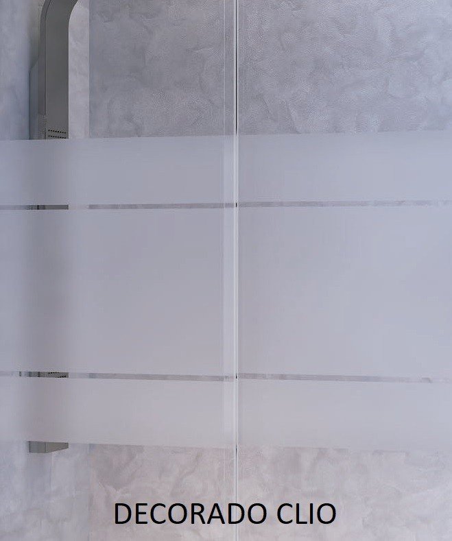 Es posible adquirirlo la mampara con vidrio transparente o con serigrafia decorado clio (tres rayas en el centro de la mampara).