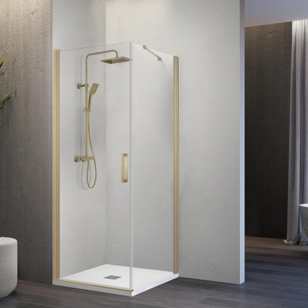 Mampara de ducha oro cepillado rectangular abatible + lateral fijo Nardi