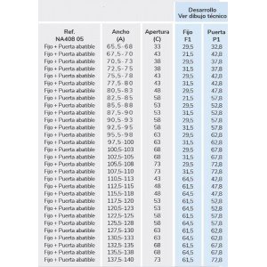 Tenemos varias combinación de medidas, con diferentes medidas tanto del fijo como del abatible, lo que forman los rangos, que tiene un juego gracias al perfil de compensación.