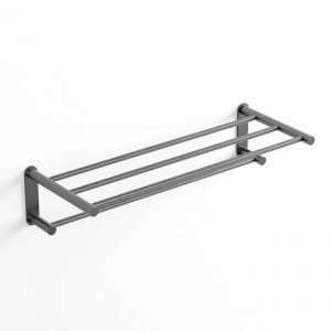 <p>Repisa con toallero para baño fabricado en acero inoxidable y acabado titanio PVD.</p>