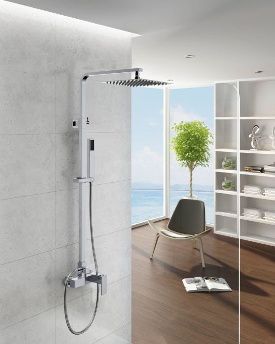 Columna de ducha en cromo Quadra, grifería de alta calidad, grifería monomando.