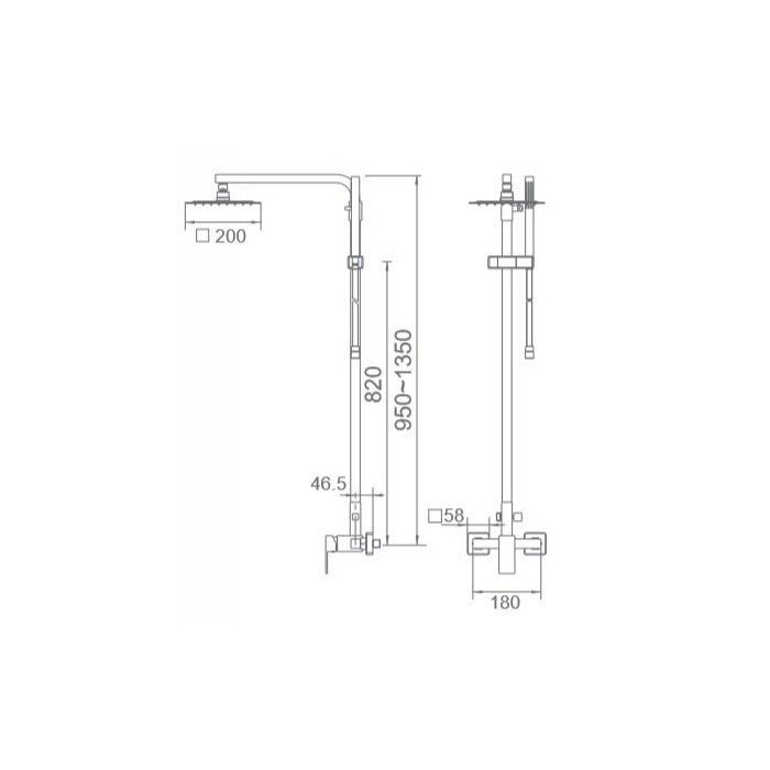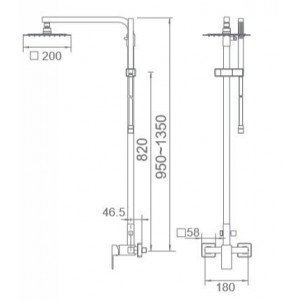 Columna de ducha plata Valencia IMEX. Barra de ducha extensible de acero inox. extensible 95/141cm. Rociador de acero inox. cuadrado 20cm, extraplano, cromado y antical.