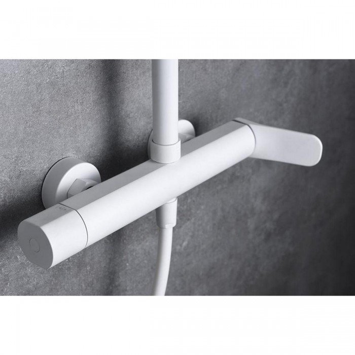 Conjunto de ducha monomando serie DINAMARCA, barra de ducha extensible, cuerpo de la griferia de latón, rociador extraplano Ø20 y antical, cartucho cerámico Ø35mm, incluye flexo y mango todo en acabado blanco mate.. Este producto ha sido diseñado para ofrecer una gran durabilidad y resistencia. Además, su diseño moderno y funcional se adapta perfectamente a cualquier espacio. Es una opción ideal para aquellos que buscan calidad y estilo en su baño. Este producto ha sido diseñado para ofrecer una gran durabilidad y resistencia. Además, su diseño moderno y funcional se adapta perfectamente a cualquier espacio. Es una opción ideal para aquellos que buscan calidad y estilo en su baño. Este artículo está diseñado para satisfacer las necesidades más exigentes.