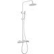 Barra de ducha extensible de acero inox. extensible 88/125 cm, en blanco mate. Rociador de acero inox. redondo Ø20cm, extraplano, blanco mate y antical. Soporte teléfono regulable en altura.