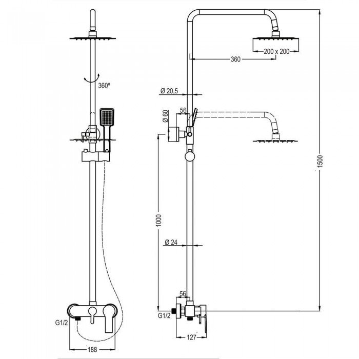 Columna de ducha cuadrada VERA Maxi