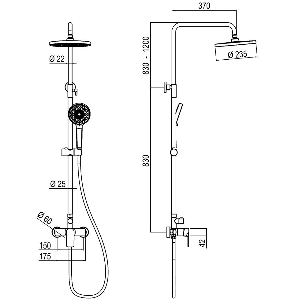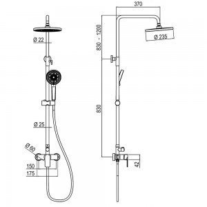 Columna de ducha monomando modelo VERDASCO negra, 2 vías, regulable en altura de 83 a 120 cm .Incluye flexo, ducha de mano y rociador redondo.
