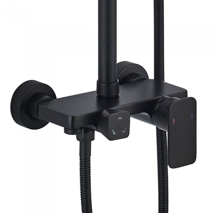 Columna de ducha monomando modelo VERDASCO negra con caño, 3 vías, regulable en altura de 96 a 136 cm.