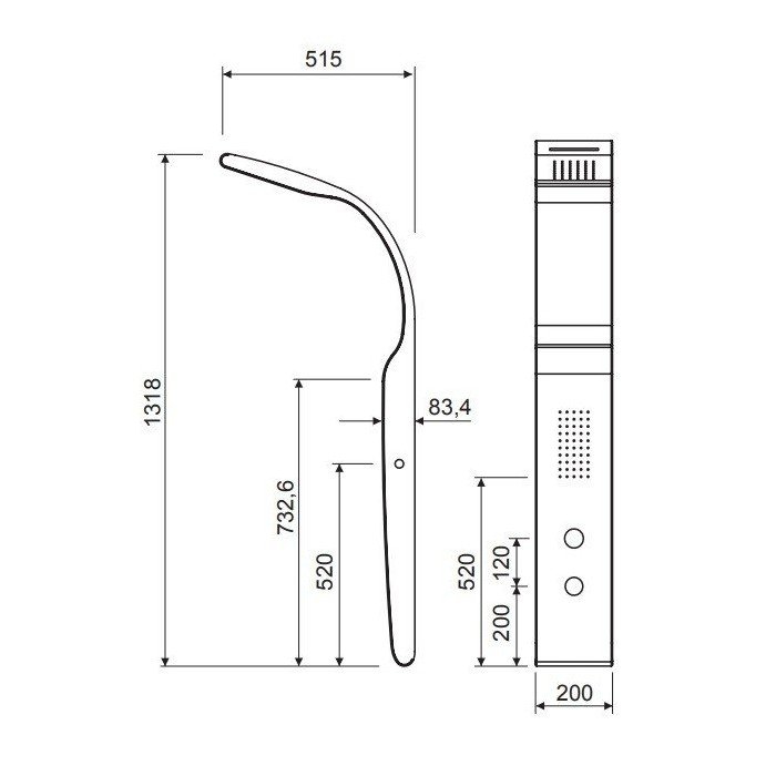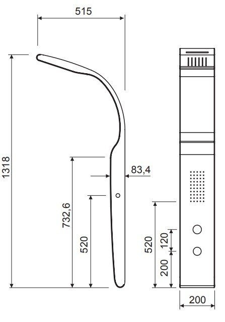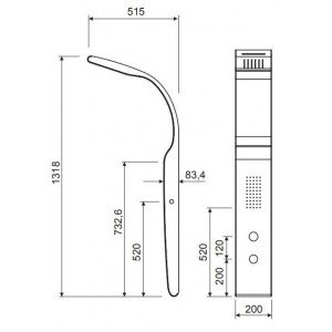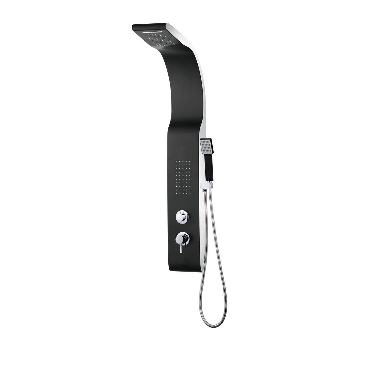 COLUMNA DE DUCHA HIDROMASAJE GRIFERÍA MONOMANDO CON FRONTAL NEGRO Y LATERAL BLANCO.