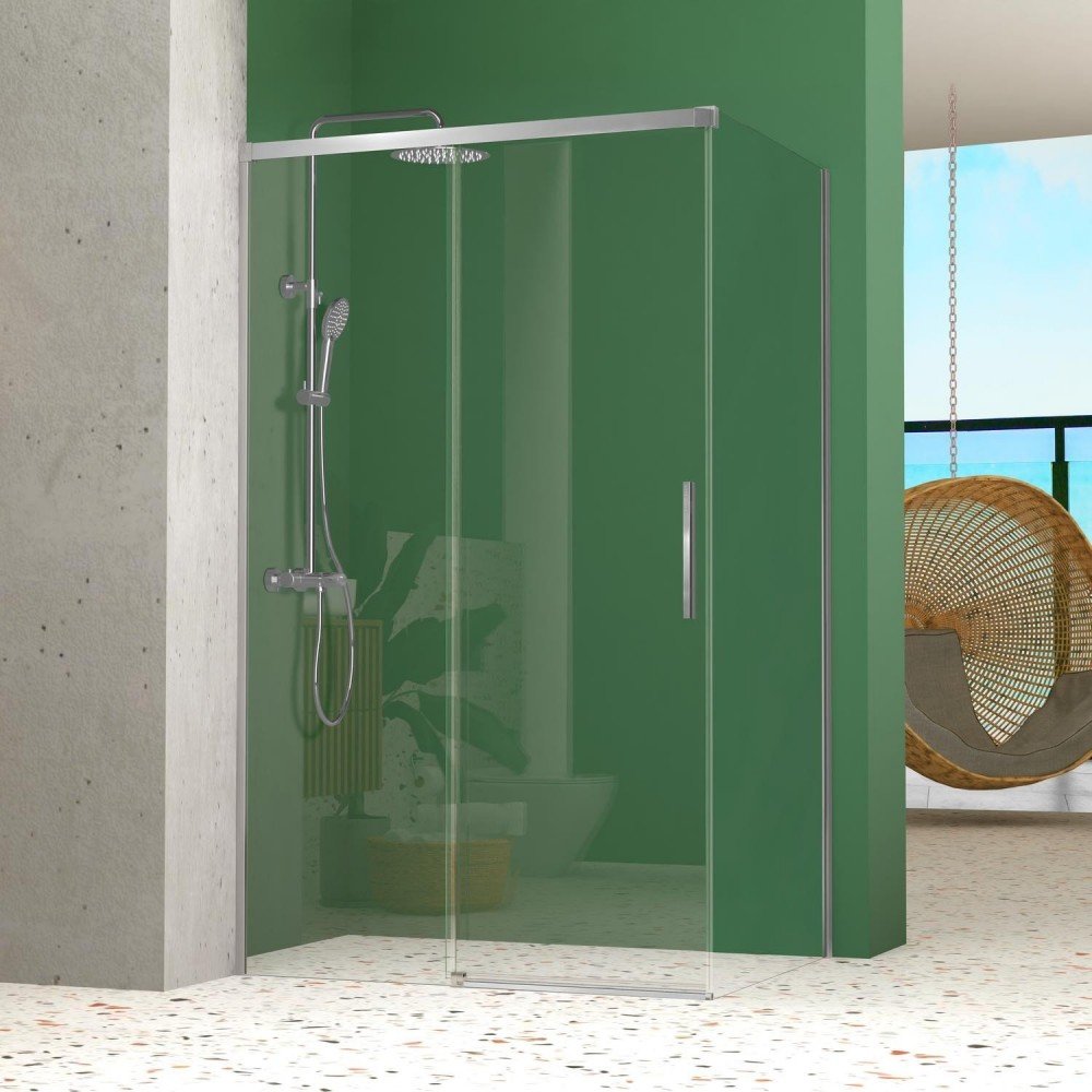 Destaca su acabado atemporal plata brillo y perfiles de aluminio anonizado, que aportan carácter contemporáneo al baño. Está equipada con rodamientos dobles y regulables para un deslizamiento fluido, y gracias a su diseño sin perfil inferior y con sistema liberador de hojas, mejora el acceso y la limpieza.