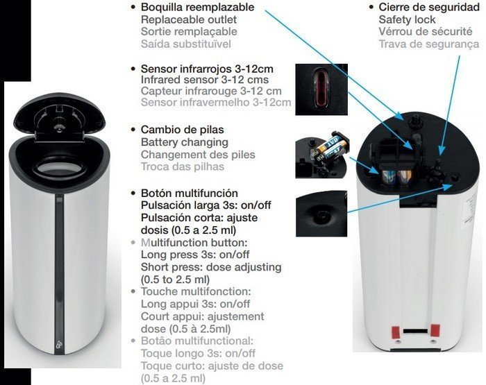Adecuado para múltiples espacios: domésticos, edificios públicos, hospitales, restaurantes, hoteles, aeropuertos, etc… Sin contacto.