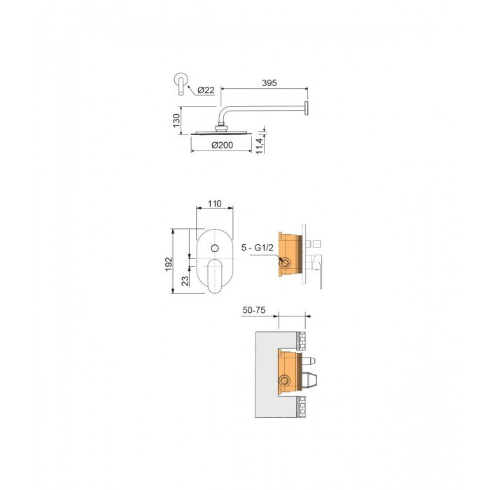 Ducha empotrada de pared Aura Lluvibath