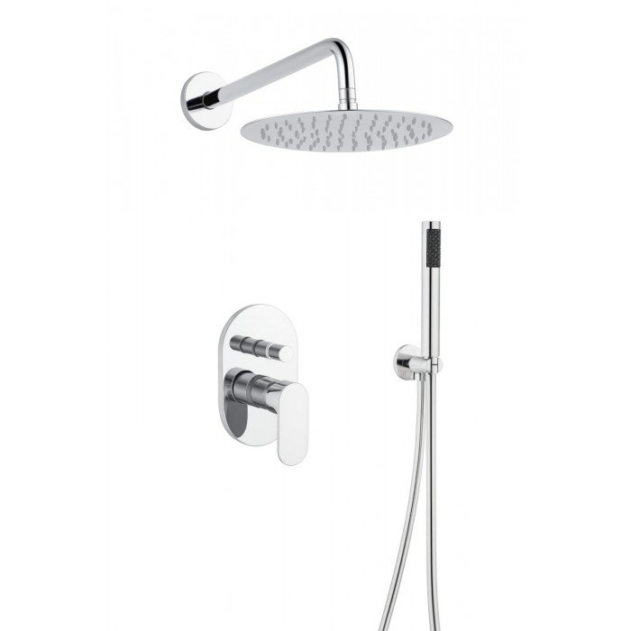 Ducha empotrada termostática de pared en plata modelo Aura, de latón cromado de 2 vías, con mango de ducha y con anti-cal.