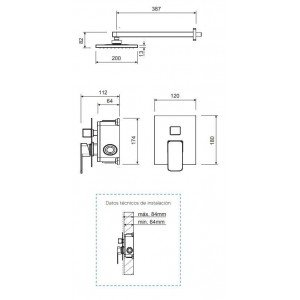 CONJUNTO DE DUCHA EMPOTRADO GRIFERÍA MONOMANDO.