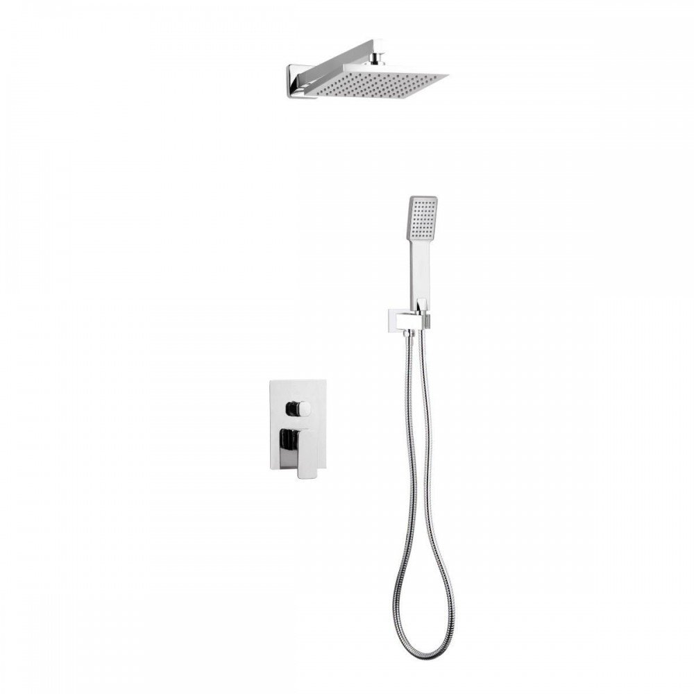 Ducha empotrada de pared en plata modelo Apolo, de latón cromado de 2 vías con caja de registro, con anti-cal.