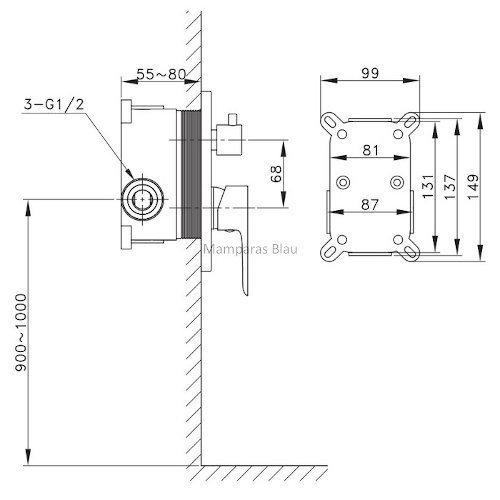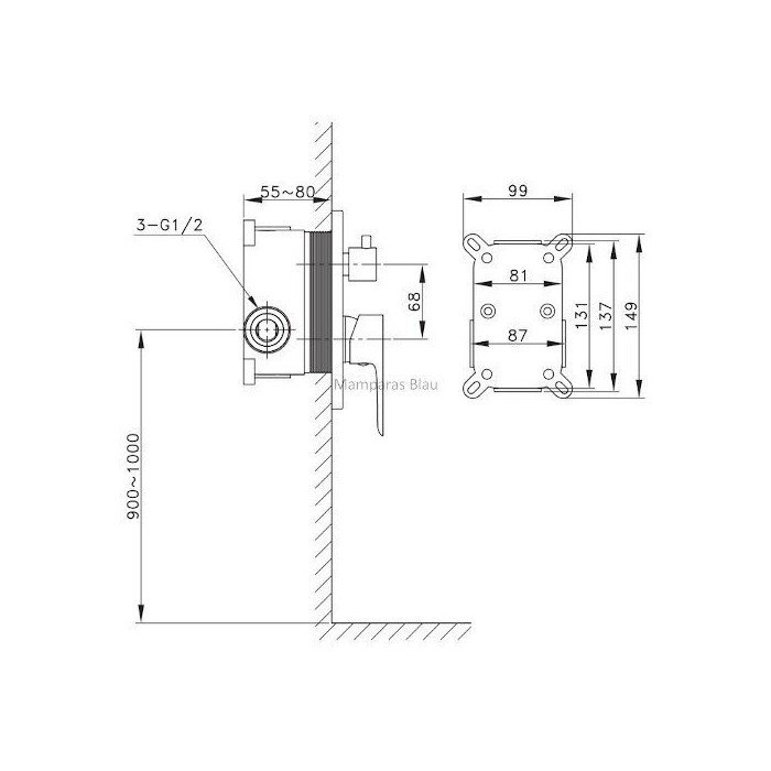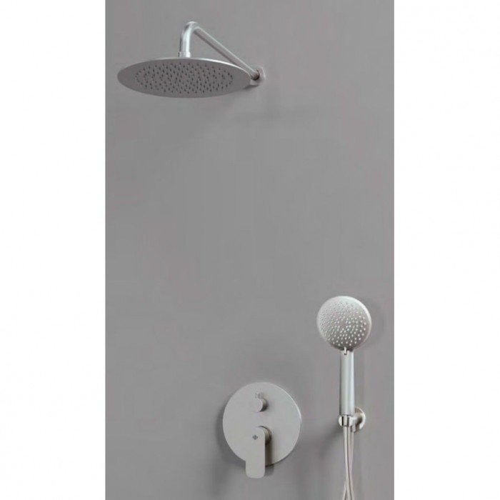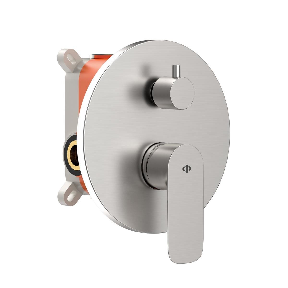 Ducha empotrada monomando de ducha níquel cepillado, en latón, mango 3 posiciones y anti-cal.