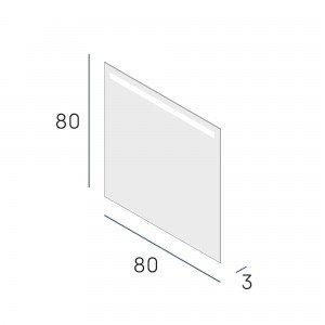 Dimensiones: 800 mm de largo, 800 mm de alto y 30 mm de fondo. Iluminación LED con temperatura de 5500ºK, 588Lm lúmenes y 6W de potencia. Peso aproximado: 9.0 kg. Consejos de mantenimiento: La limpieza debe efectuarse con un paño ligeramente humedecido con agua (sin disolventes ni productos abrasivos) El espejo está fabricado con vidrio de 4 mm, libre de cobre y aluminio para mayor durabilidad y resistencia a la corrosión.