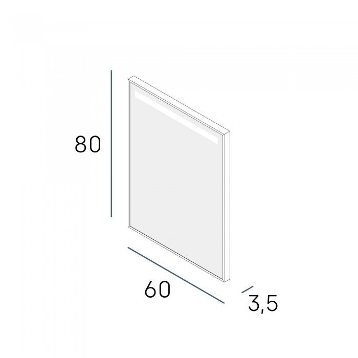 Dimensiones: 600 mm de largo, 800 mm de alto y 40 mm de fondo. Iluminación LED con temperatura de 5500ºK, 416Lm lúmenes y 4W de potencia. Peso aproximado: 8.0 kg. Consejos de mantenimiento: La limpieza debe efectuarse con un paño ligeramente humedecido con agua (sin disolventes ni productos abrasivos) El espejo está fabricado con vidrio de 4 mm, libre de cobre y aluminio para mayor durabilidad y resistencia a la corrosión.