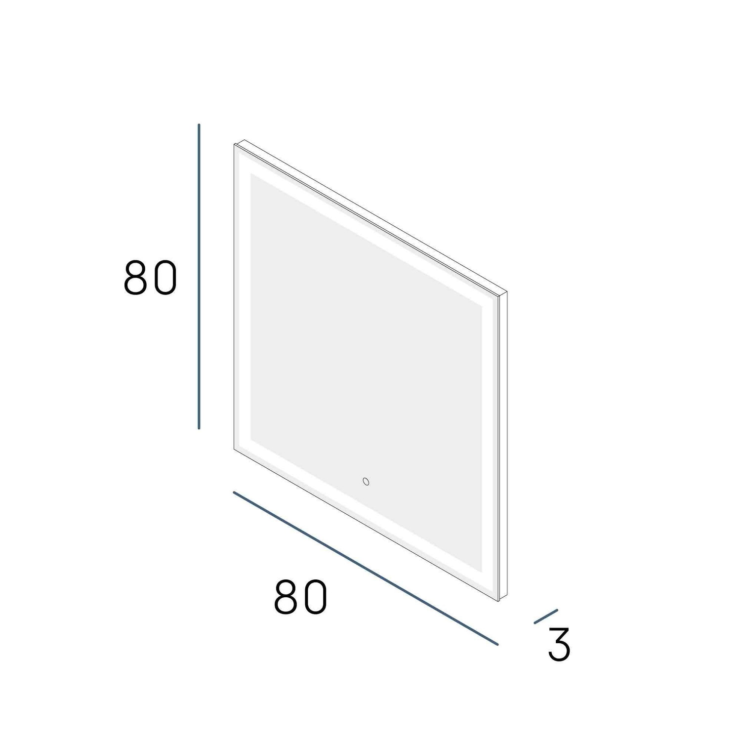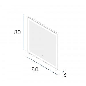Dimensiones: 800 mm de largo, 800 mm de alto y 40 mm de fondo. Iluminación LED con temperatura de 5500ºK con opción de 3000K o 4200K, 2112Lm lúmenes y 21W de potencia. Incluye sistema antivaho para mayor comodidad. Peso aproximado: 10.0 kg. Consejos de mantenimiento: La limpieza debe efectuarse con un paño ligeramente humedecido con agua (sin disolventes ni productos abrasivos) El espejo está fabricado con vidrio de 4 mm, libre de cobre y aluminio para mayor durabilidad y resistencia a la corrosión.
