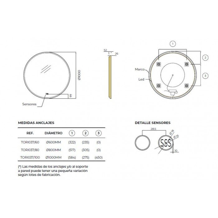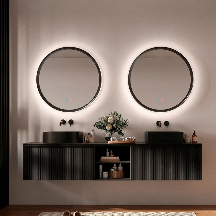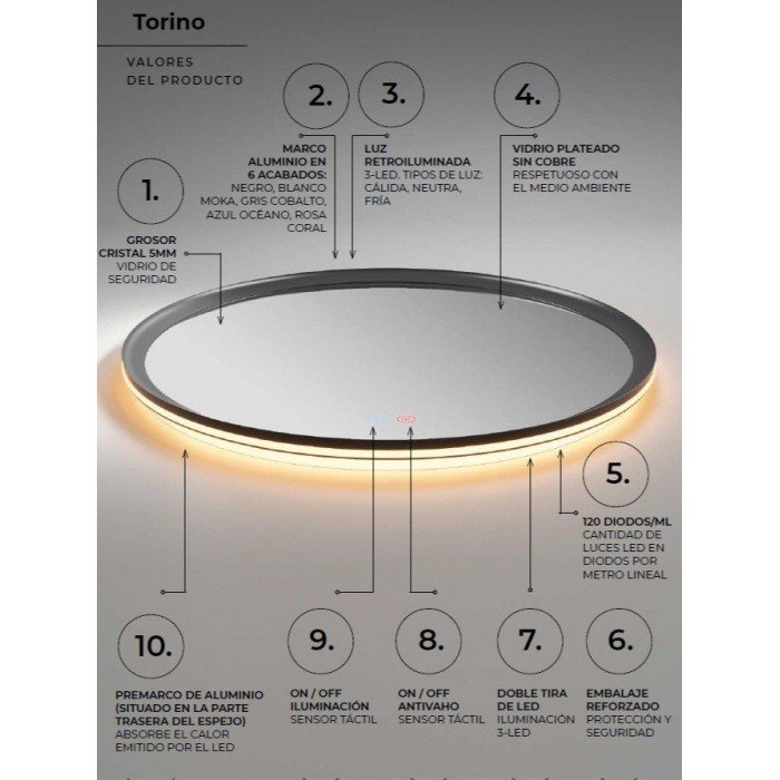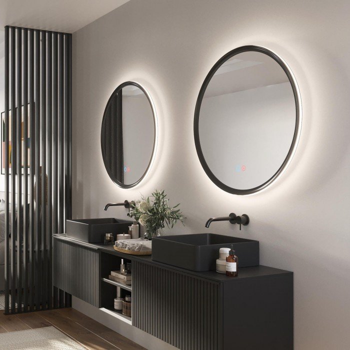 El Espejo Redondo Torino de LEDIMEX combina elegancia y funcionalidad con su iluminación LED retroiluminada y perimetral.
