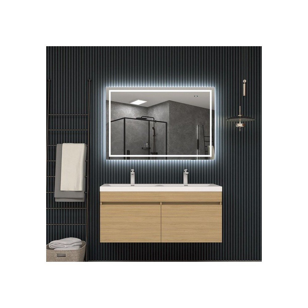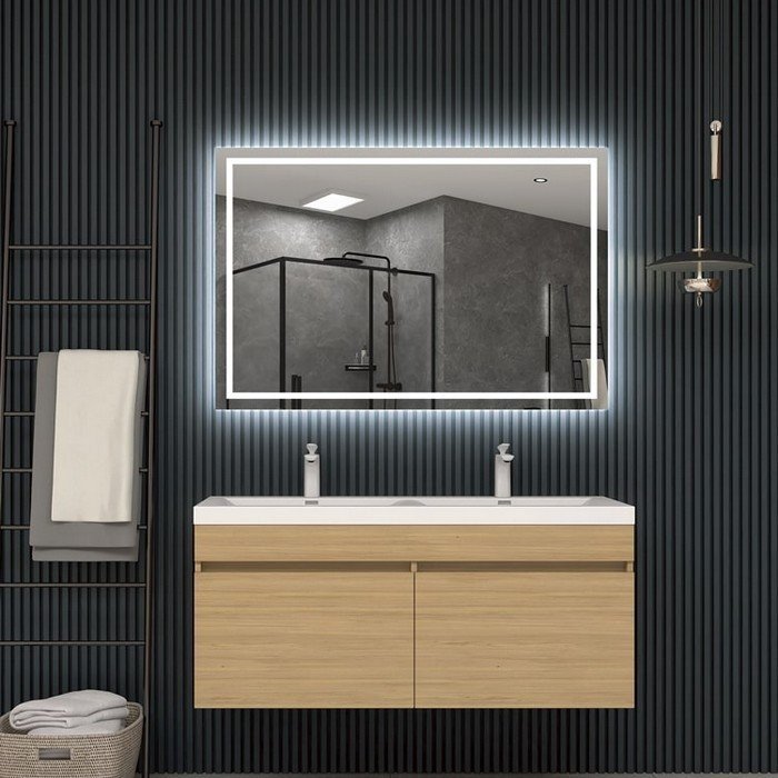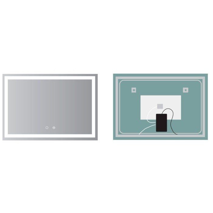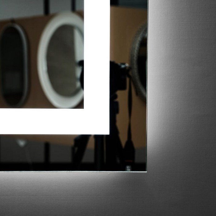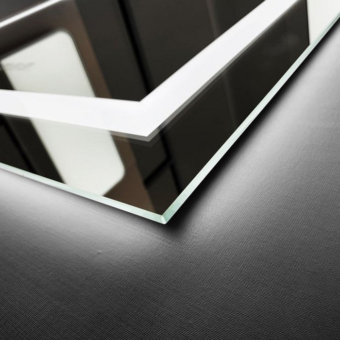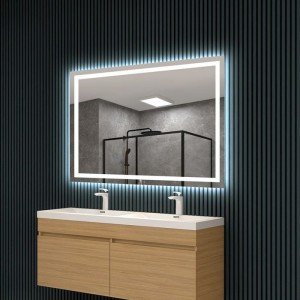 Espejo cuadrado o rectangular, luz frontal, fría, con doble sensor, antivaho y on/off.
