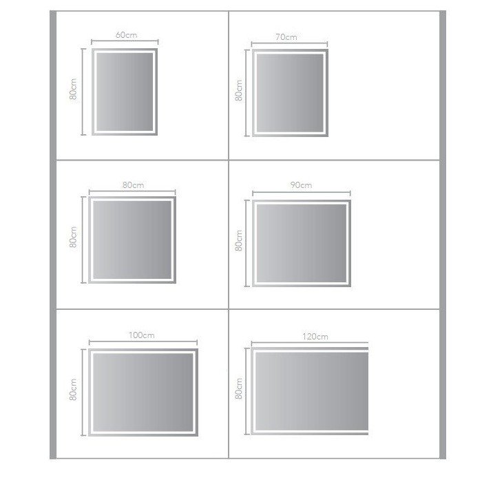 Espejo cuadrado o rectangular, luz frontal, fría, con doble sensor, antivaho y on/off., disponible en varias medidas a escoger, modelo Holanda.