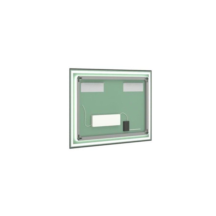 Espejo con retroiluminación. Vidrio de 4mm de espesor con esquinas rectas, bisel trasero de 10 mm pintado negro y arenado perimetral por el que se proyecta la luz.