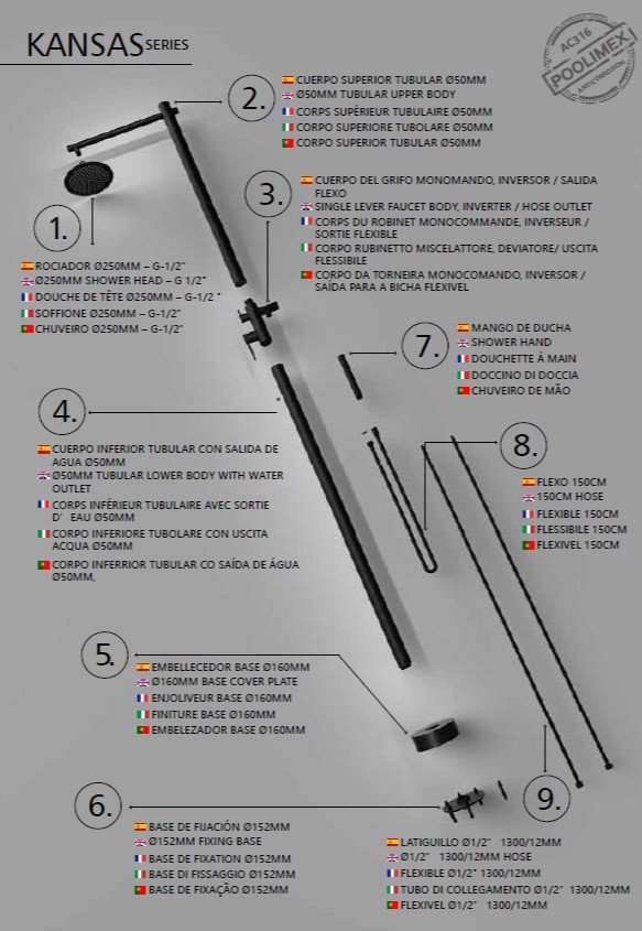 <p>Grifería de piscina kansas acero s.316 negro mate</p>
