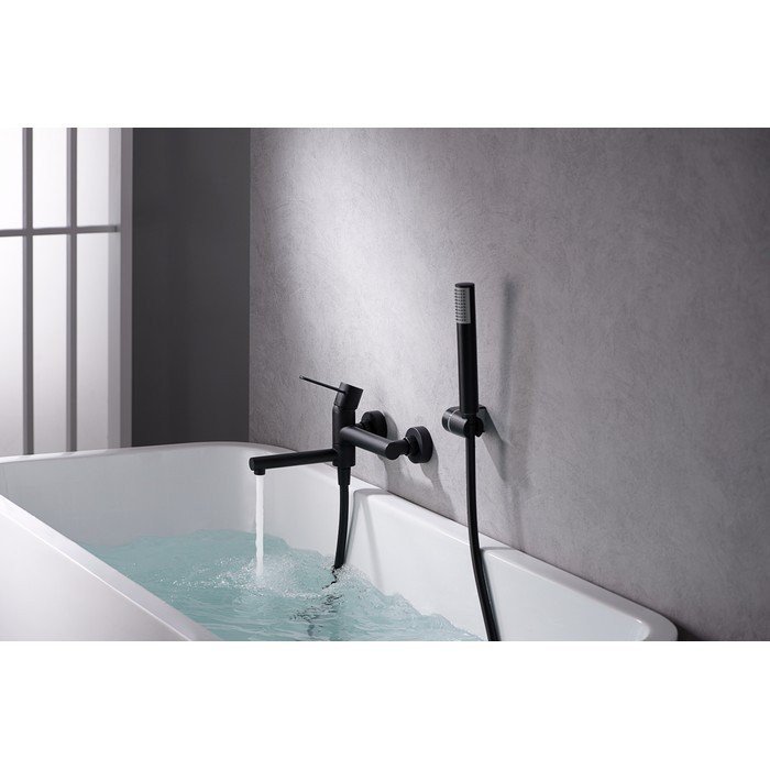 Grifería de bañera milos, grifería ducha de latón negro mate. Monomando negro mate.