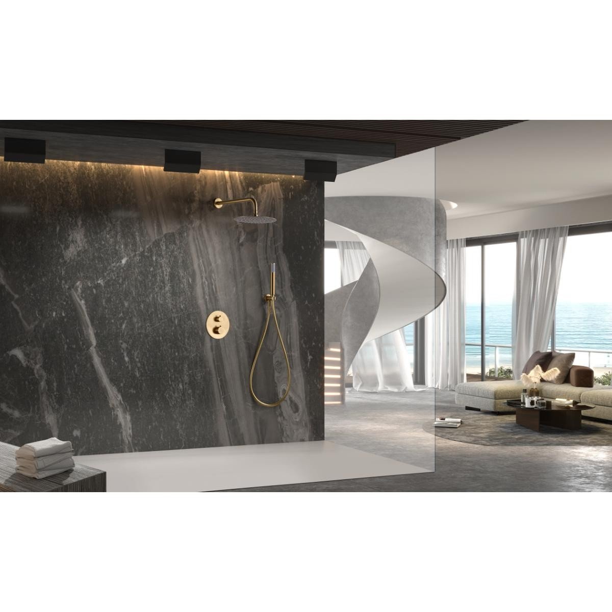 Ducha termostática oro cepillado empotrada pared Génova imex