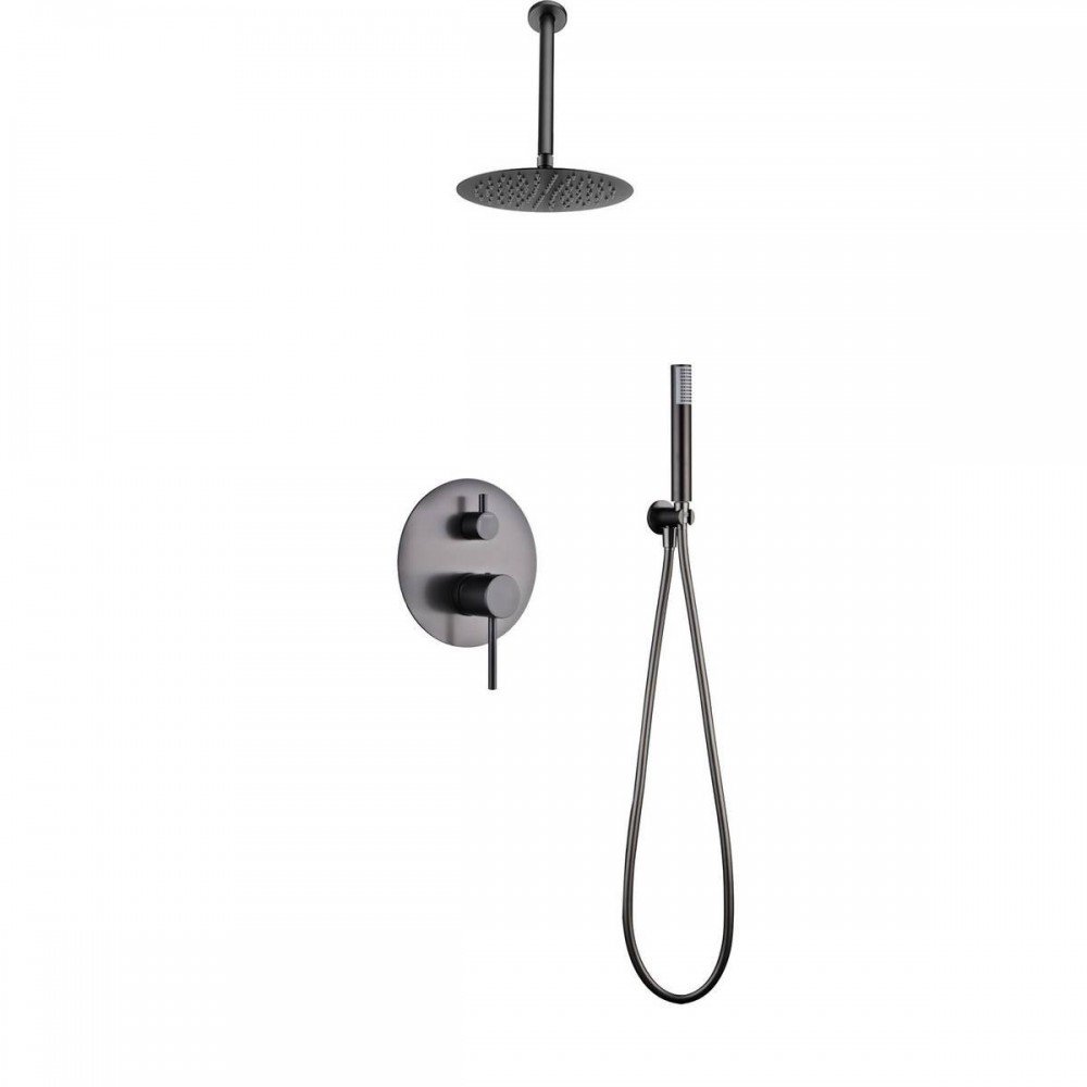 Ducha empotrada monomando de techo modelo Monza, en color black gun metal y con anti-cal.