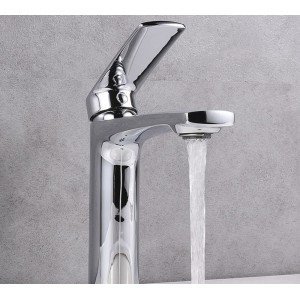 Grifo monomando de lavabo UGO alto, perfecto para lavabos de sobre encimera o tipo bol.