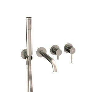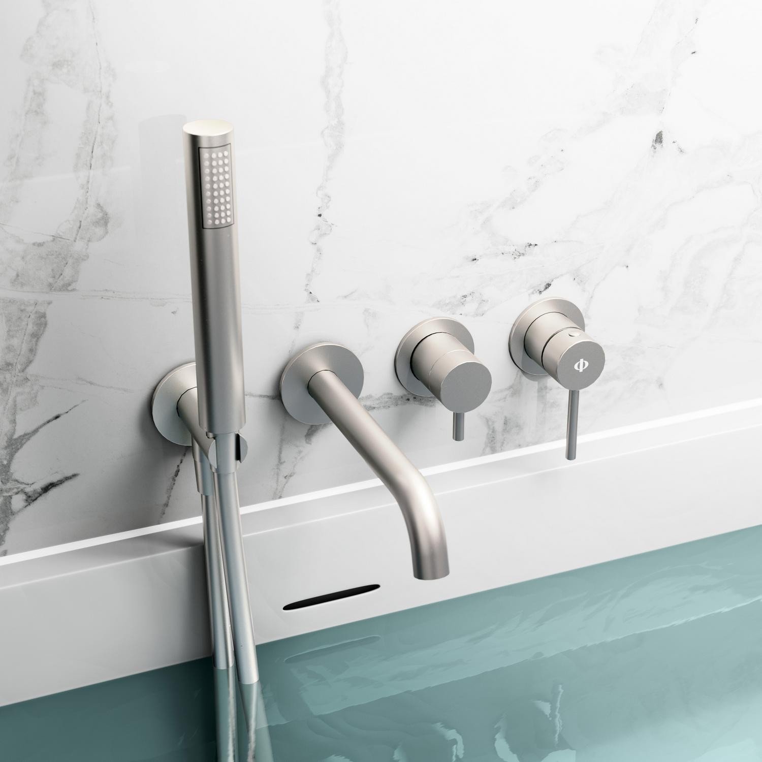 Grifo de baño empotrado de bañera en acabado níquel cepillado.