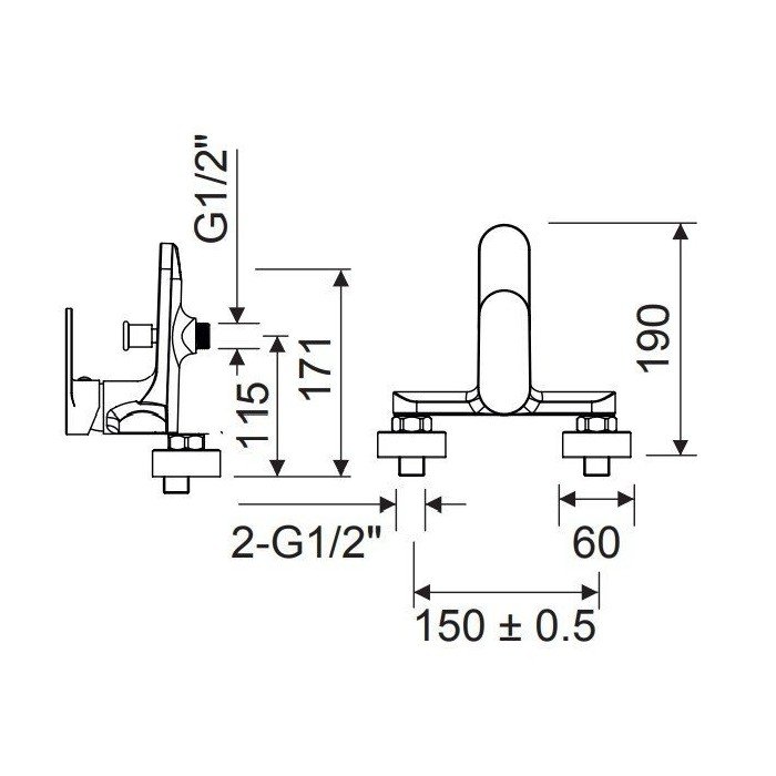 Grifo de bañera modelo Aura, cuerpo de latón negro mate, cartucho cerámico 3,5 cm.