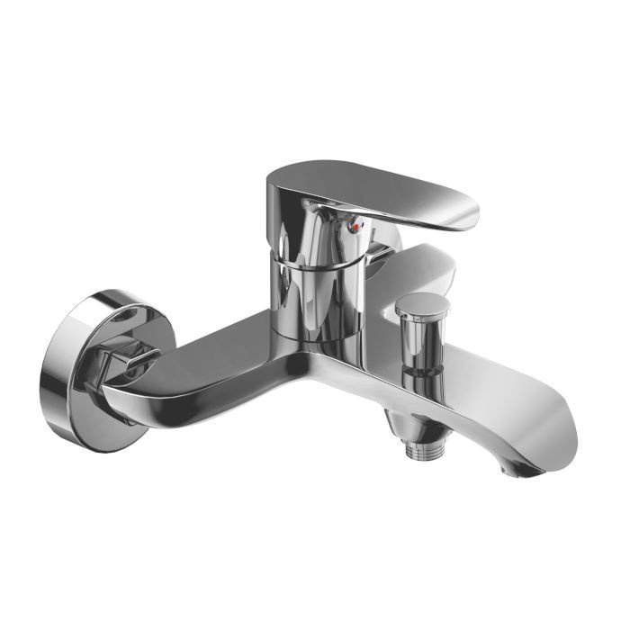 Grifos monomando de bañera plata serie DAN, Cuerpo de latón cromo, cartucho cerámico 3,5 cm, incluye rociador y flexo.