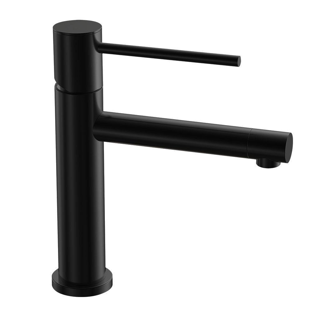 Grifo monomando de lavabo ZUÑIGA NEGRO diseño estilizado y redondo.