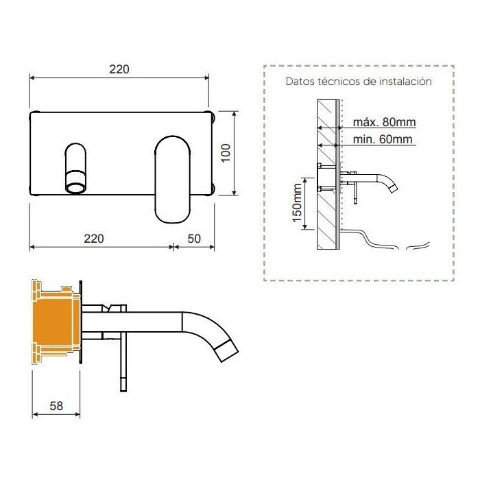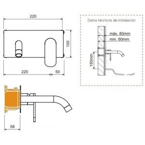 GRIFERÍA MONOMANDO LAVABO EMPOTRADO