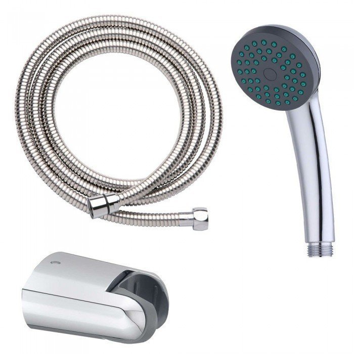 - - Grifo monomando de ducha - Mango de ducha de mano ABS - Ducha de mano ABS y flexo de acero inoxidable - Excentricas de diseño - Soporte ducha ABS