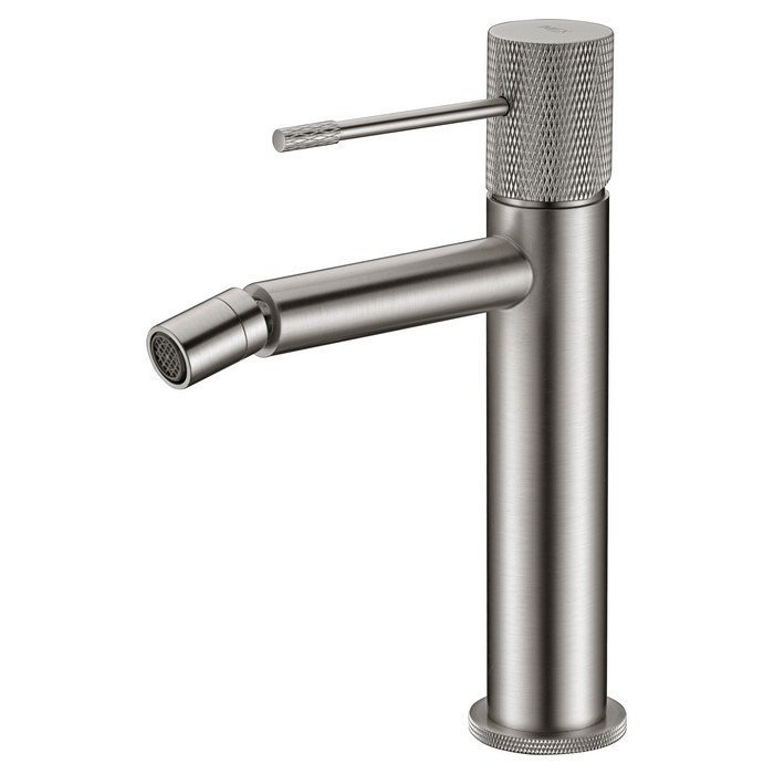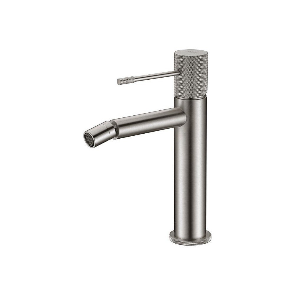 Grifo monomando de bidé Línea IMEX. Monomando bidé en níquel cepillado. Cuerpo grifería en níquel cepillado. Cuerpo del mando rugoso.