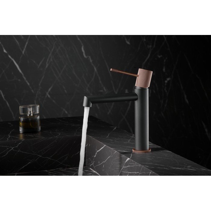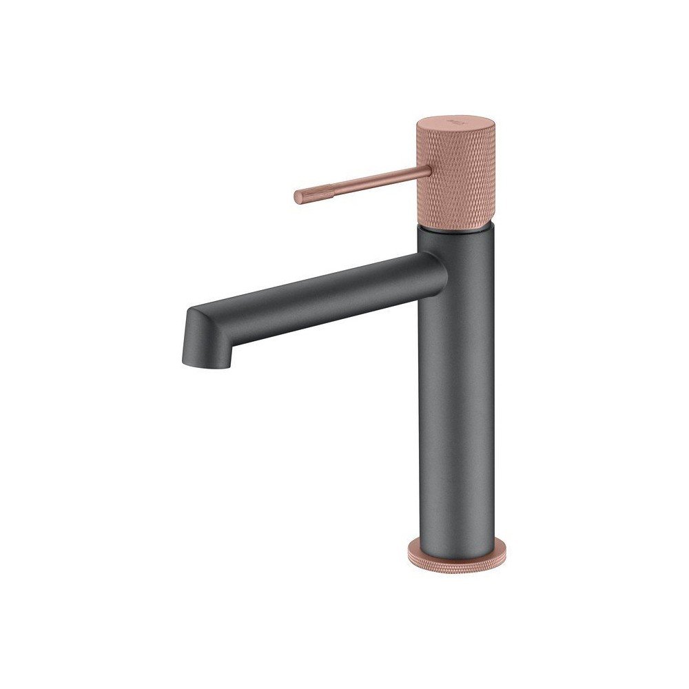 Grifo monomando de lavabo Line IMEX. Monomando de lavabo en gris champan. Cuerpo grifería en gris champan. Cuerpo del mando rugoso.