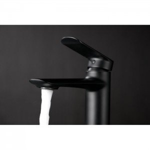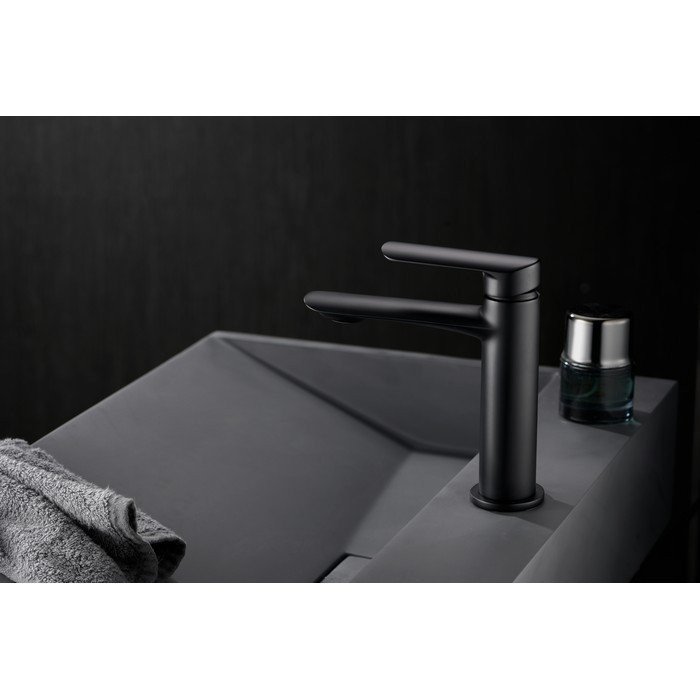 Monomando negro mate de lavabo Ural. Cuerpo de grifería en negro mate. Cartucho cerámico 35 mm.