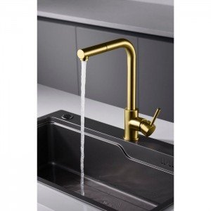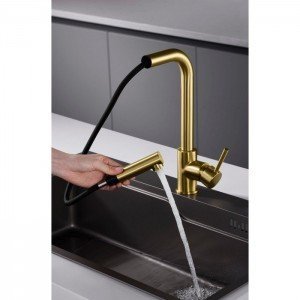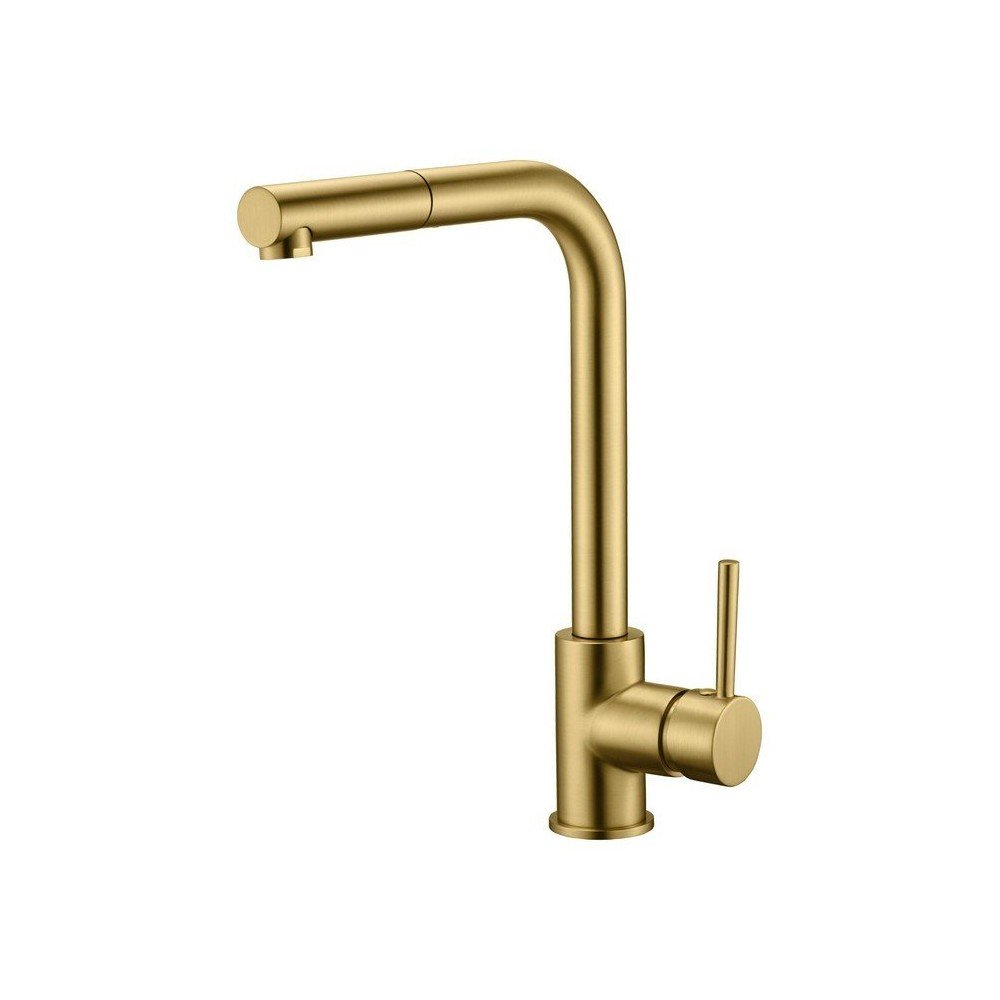 Grifo monomando extraíble oro cepillado cocina Malta IMEX. Cuerpo de grifería en Latón. Cartucho cerámico de 35 mm.