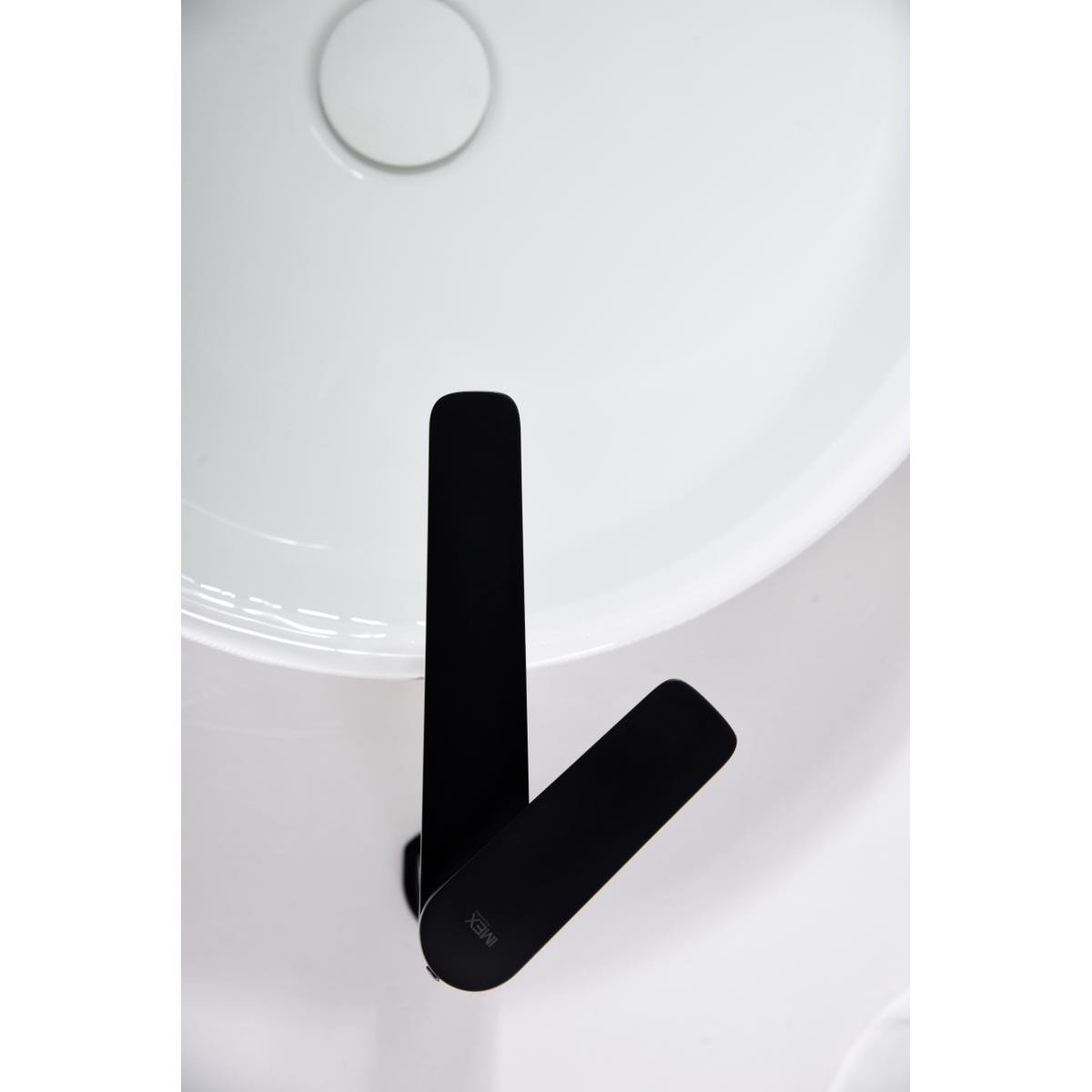 Grifo monomando caño alto de lavabo Nápoles IMEX. Monomando de lavabo. Cuerpo de grifería en negro mate. Flexos 3/8.