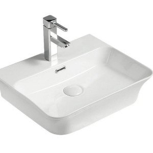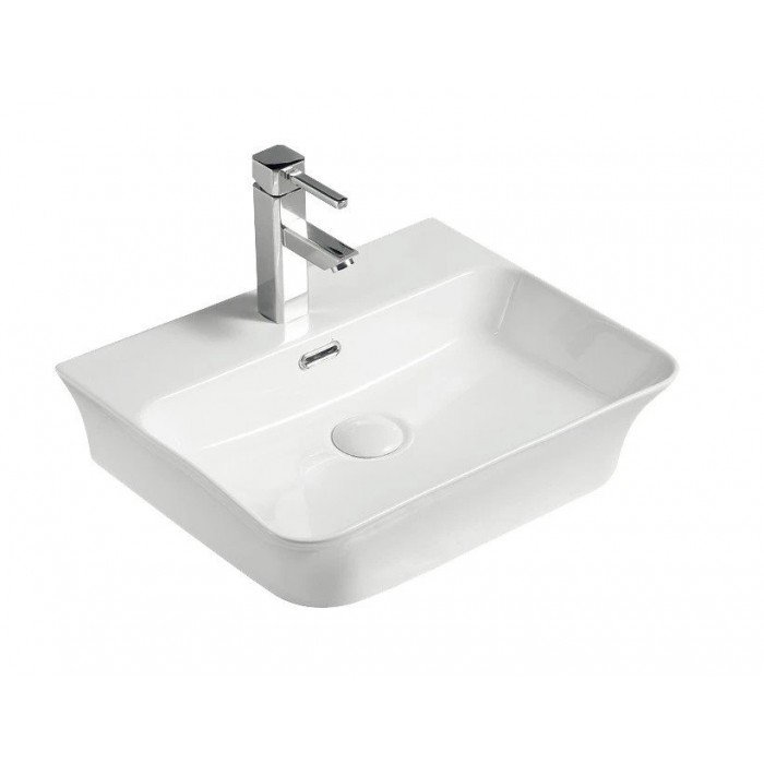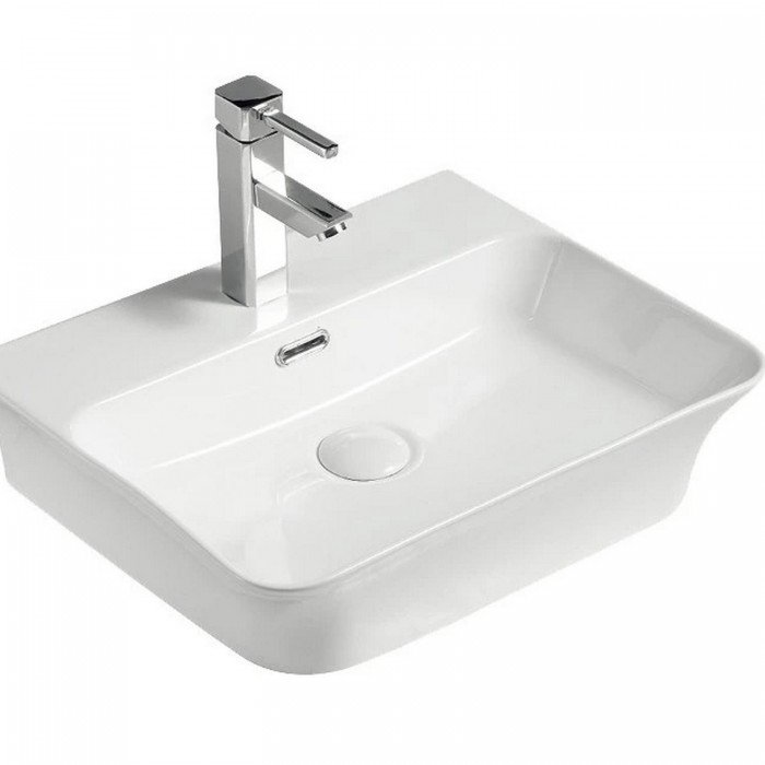 Lavabo de cerámica blanco sobre encimera o anclaje a pared 48 cm.