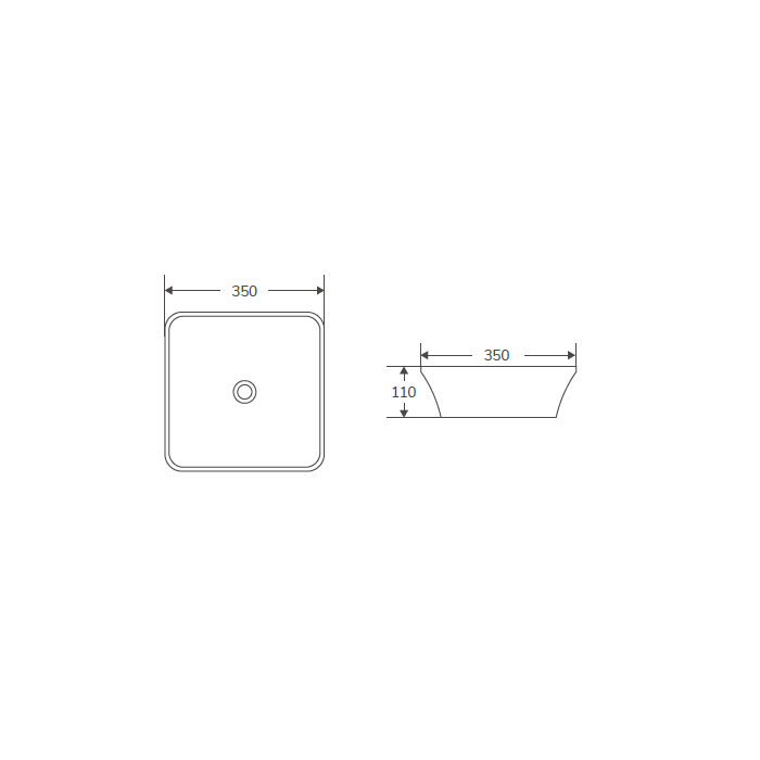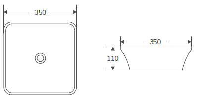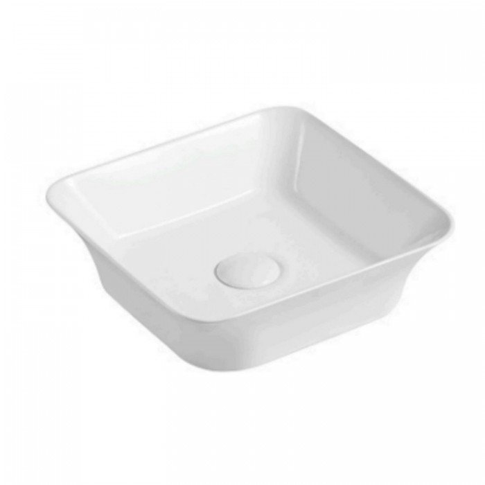 - Lavabo de forma cuadrada con líneas suaves y redondeadas.