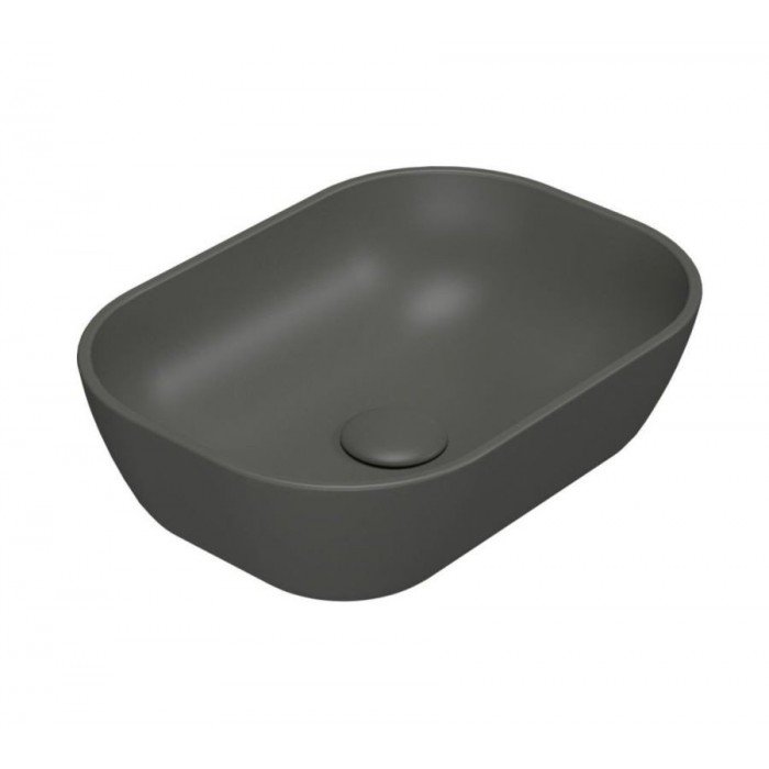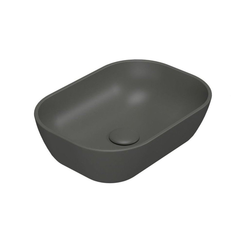 Lavado de resina ovalado de sobre encimera en color antracita, con válvula a juego.