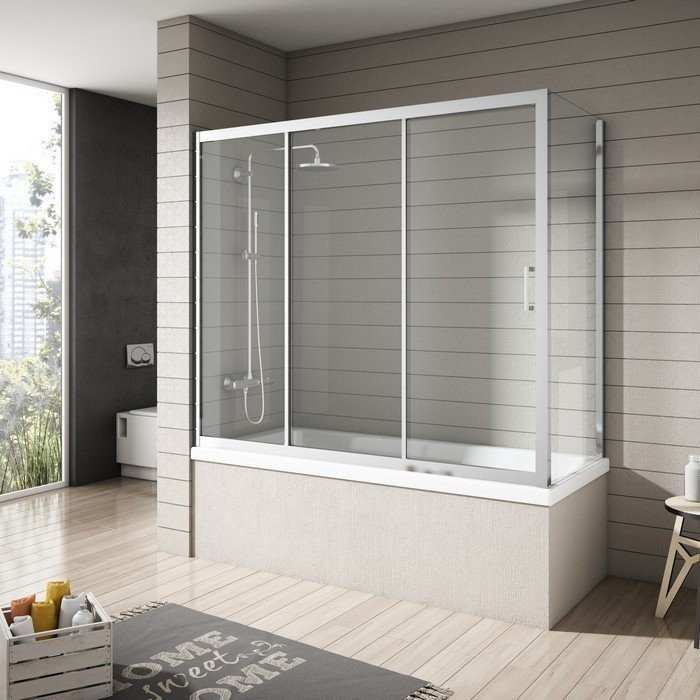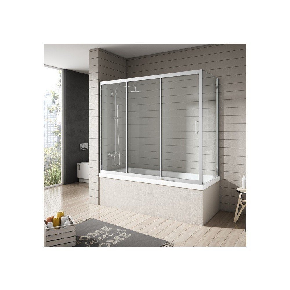 Mampara de bañera rectangular 3 hojas + lateral fijo Nantes