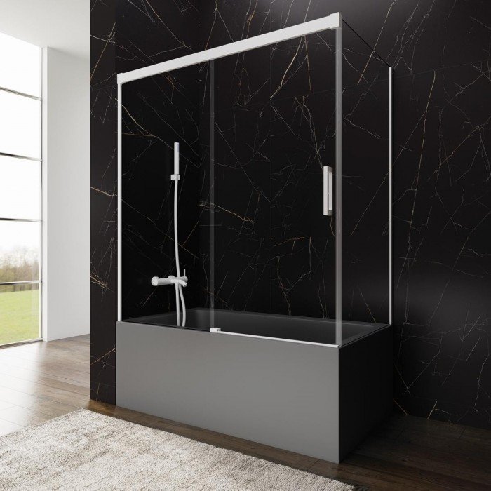 Mampara de bañera en blanco mate rectangular corredera Basic
