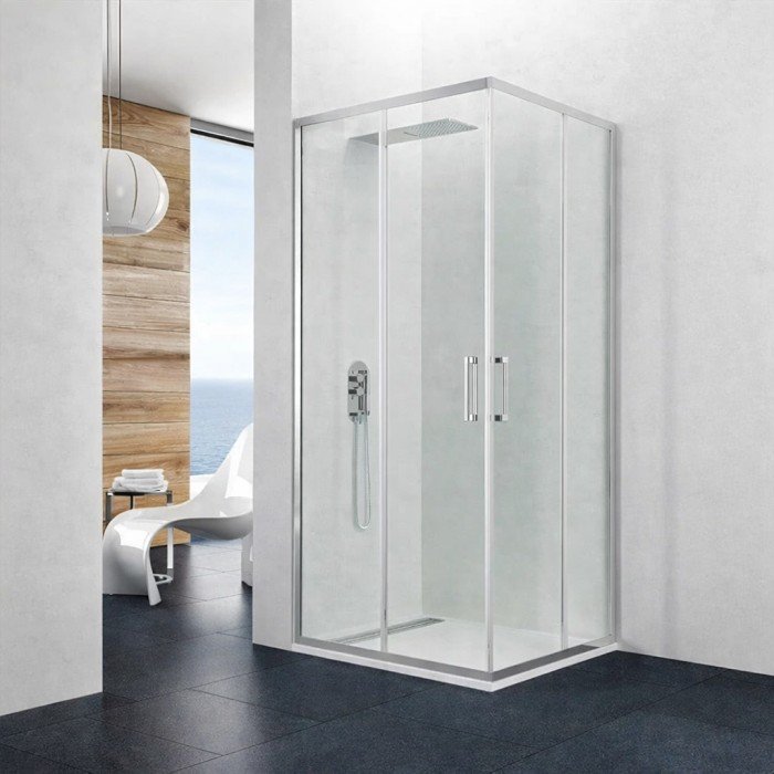 Mampara angular ducha 2 fijos y 2 correderas Prestige