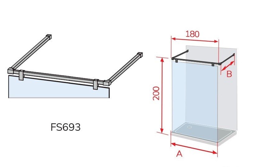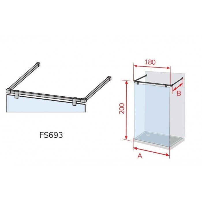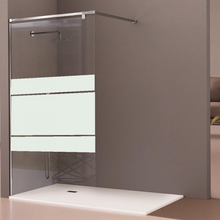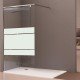 Modelo: Serie Fresh Salomón FS693 05. Altura: 2,00 cm. Medidas: Anchos de 68 hasta 119 cm. Composición: Un vidrio fijo. Vidrio: Templado de seguridad transparente o serigrafiado. Grosor: 8 mm. Fácil limpieza: Tratamiento anti-cal aplicado. Soporte: Dos barras de acero inoxidable 90º hasta 100 cm. Perfiles: En negro mate. Perfil inferior: Sin perfil inferior. Reversible: No, hay que elegir el lado.